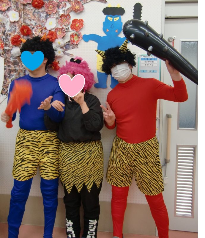 節分の日にみんなで鬼になって写真を撮りました👹